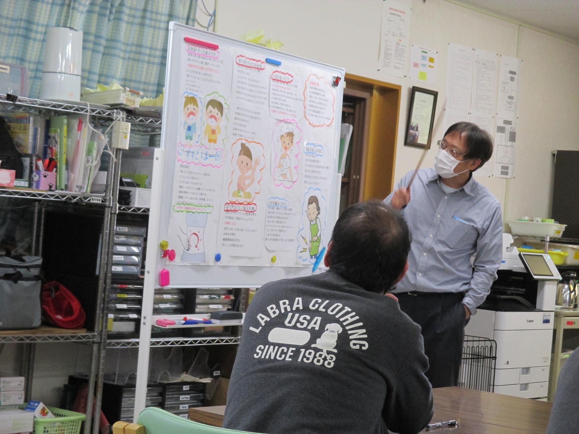 お風呂に入る目的やその効果などを、職員お手製のポスターを使いながら行いました。